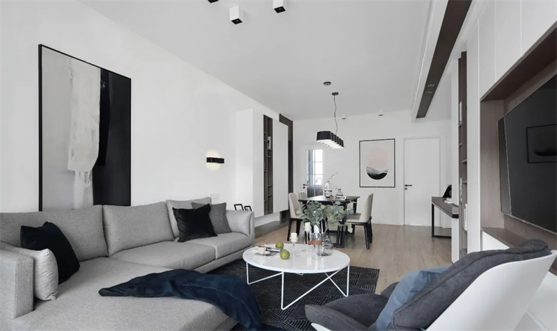 本案选用现代极简风格装修,通过简洁、清新的设计元素,创造了一个舒适、宁静的家居环境,让极简主义的设计原则在整个空间中得到了充分体现。