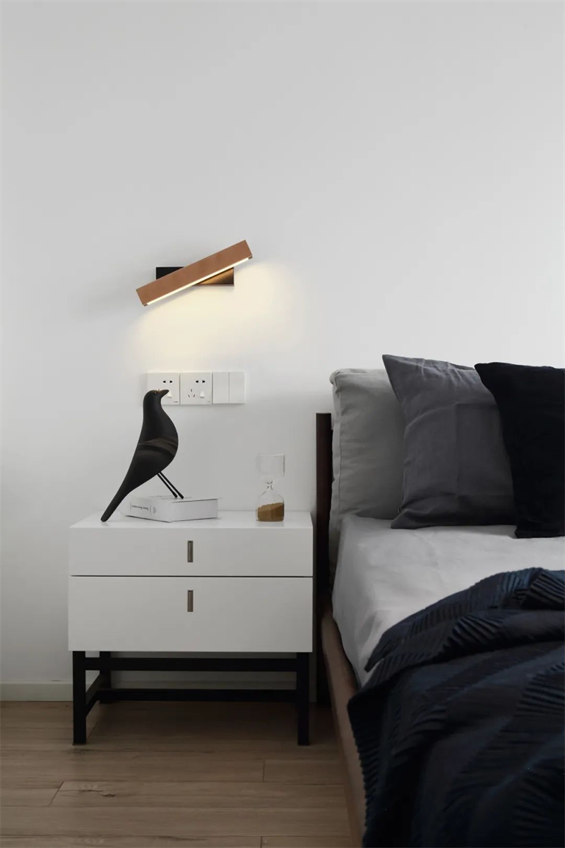 卧室的墙面选择明亮的白色增加空间感和提升明亮度。地面采用原木色木质地板,为空间增添温暖和自然感。床头柜和衣柜采用简约的设计,整个卧室营造出一种宁静和清新的氛围,强调整洁和有序,为居住者提供舒适和宁静的休息空间。